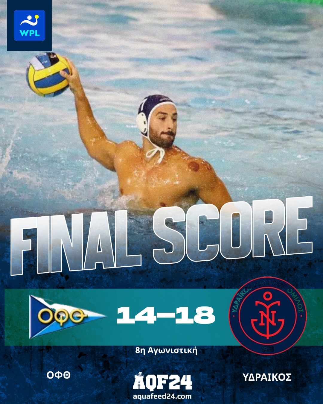 Με το διπλό από το Ποσειδώνιο κολυμβητήριο της Θεσσαλονίκης έφυγε ο Υδραϊκός, καθώς επικράτησε του πολύ μαχητικού ΟΦΘ με 18-14, σε ματς που αφορά την 8η αγωνιστική της Waterpolo League Men.