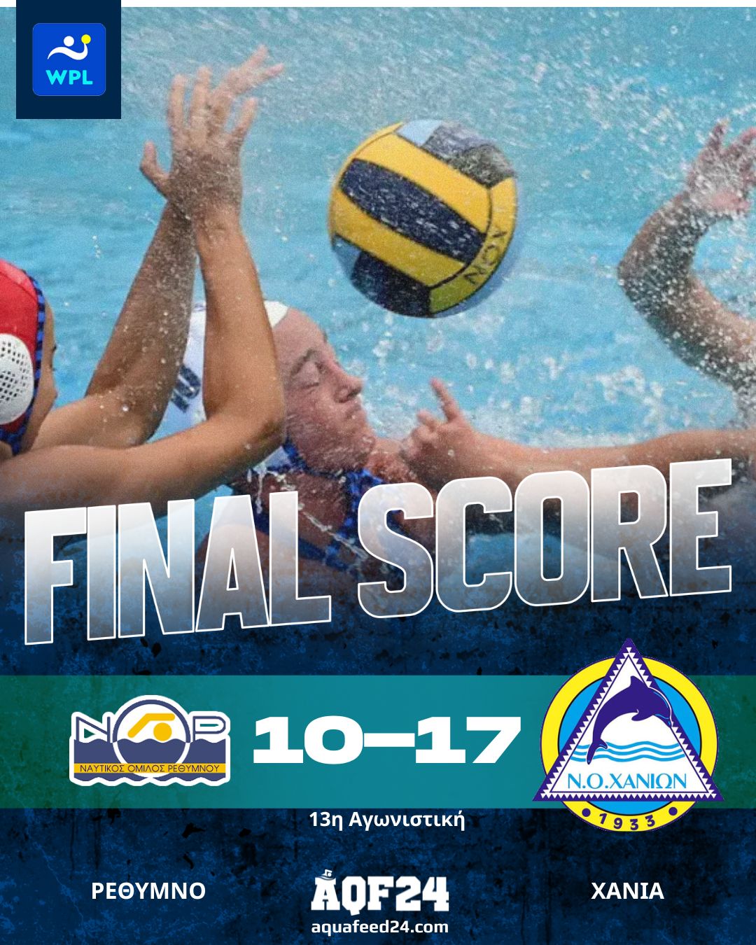 Σε ένα παιχνίδι με αρκετά τέρματα, ο ΝΟ Χανίων επικράτησε σχετικά εύκολα με 17-10 του ΝΟ Ρεθύμνου στο ανοιχτό κολυμβητήριο του Ηρακλείου, στο πλαίσιο της 13ης αγωνιστικής της Waterpolo League γυναικών.