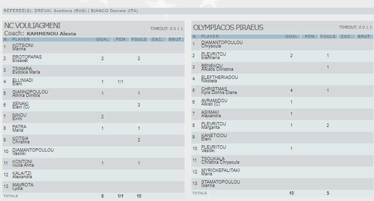 Ο Ολυμπιακός από το ξεκίνημα έπαιξε το σύστημα με την παίκτρια μέσα στο τέρμα, ενώ και η Βουλιαγμένη ξεκίνησε με ανάμεσα. Στα τέρματα ήταν η Κοτσιώνη και η Σταματοπούλου.