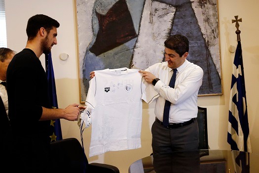 Το γραφείο του Υφυπουργού Αθλητισμού, Λευτέρη Αυγενάκη, παρουσία και του Γενικού Γραμματέα Αθλητισμού, Γιώργου Μαυρωτά, επισκέφθηκαν στις 12:00 την Τρίτη οι αθλητές της παγκόσμιας πρωταθλήτριας Εθνικής Νέων ανδρών.