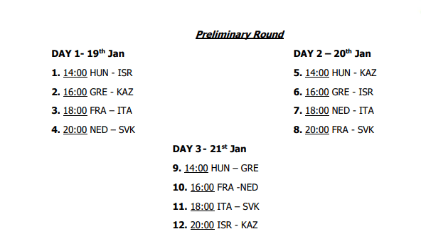 Υπενθυμίζεται ότι στις 19/1 η Ελλάδα δίνει το πρώτο της παιχνίδι με αντίπαλο το Καζακστάν στις 17:00 (Ώρα Ελλάδος) και θέλει να μπει δυναμικά και να βρει ρυθμό, ενώ το νωρίς πρωί της ίδιας ημέρας θα προηγηθεί προπόνηση.