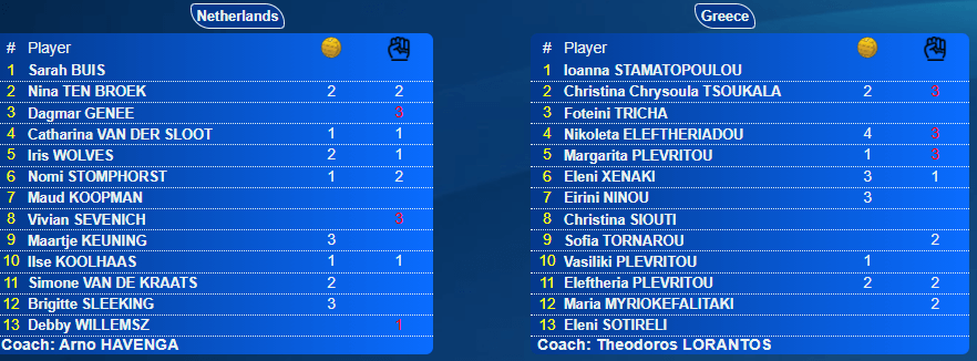 Στο 1:31 η Ολλανδία κέρδισε αυστηρή ποινή στα 2μ και η Γούλβς από το δεύτερο δοκάρι σκόραρε για το 3-4 των «Οράνιε». Τα 3/4 γκολ της Ολλανδίας προήλθαν από παίκτη παραπάνω, τα δύο εξ αυτών από το δεύτερο δοκάρι.