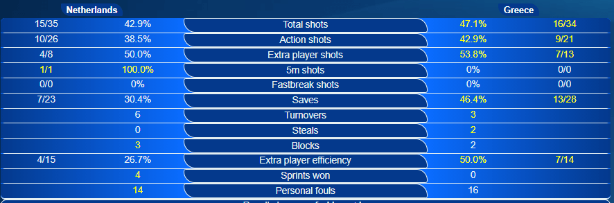 Παρ’όλα αυτά, στο 2:12 και ύστερα από διαδοχικές φάσεις χωρίς γκολ, η Τεν Μπροκ με ένα μακρινό σουτ έβαλε μπροστά την Ολλανδία με 15-14, σε ένα κρίσιμο σημείο.