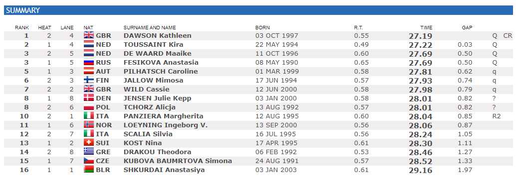 Στον 2ο ημιτελικό των 50μ. ύπτιο συμμετείχε την Τρίτη η Ελληνίδα πρωταθλήτρια, Νόρα Δράκου, η οποία έπεσε στην 8η διαδρομή της κούρσας.