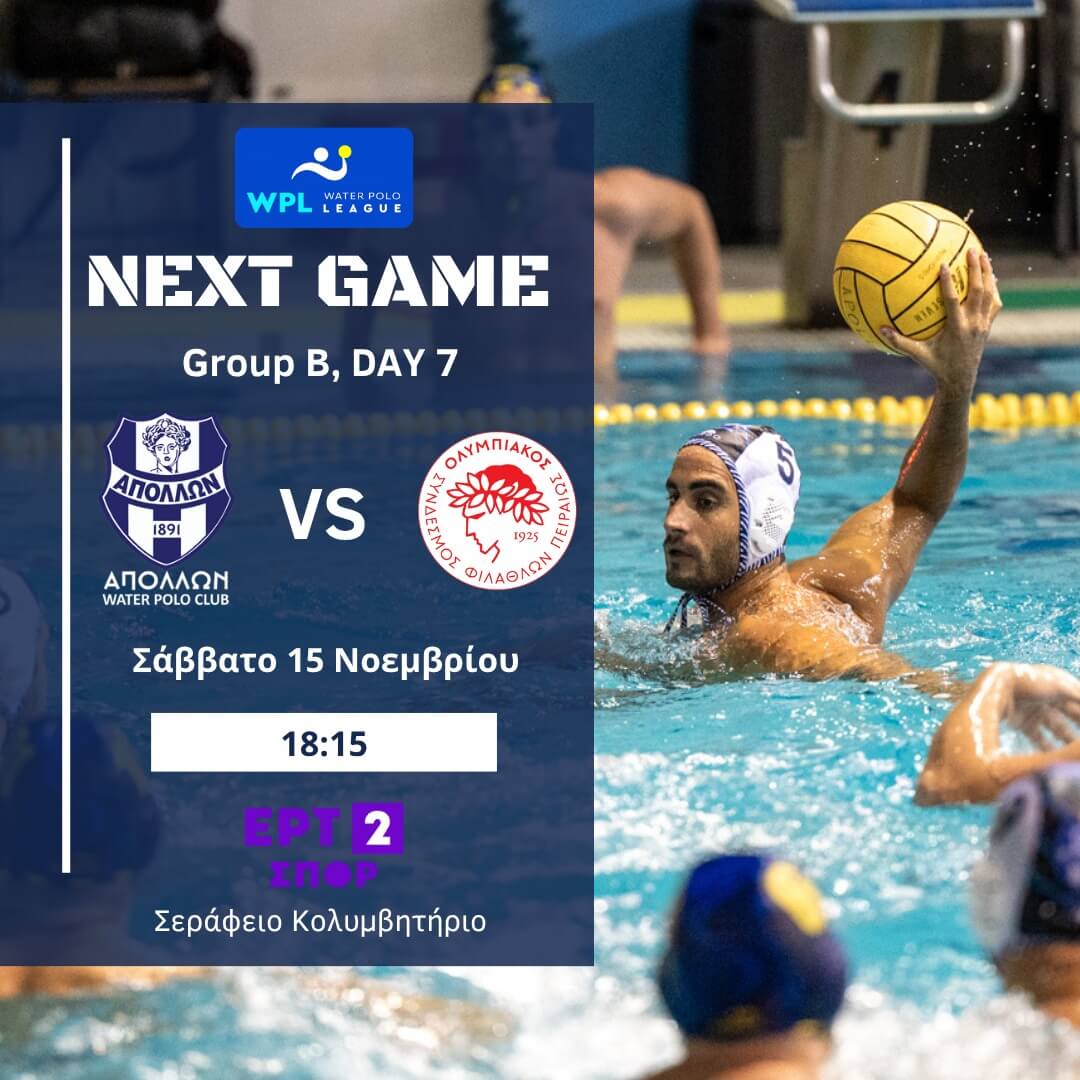 Το μεγάλο ματς Απόλλωνα με Ολυμπιακό στις 18:15 στο Σεράφειο για την 7η αγωνιστική του Β’ Ομίλου της Water Polo League , θα μεταδοθεί από την ΕΡΤ Σπορ 2.